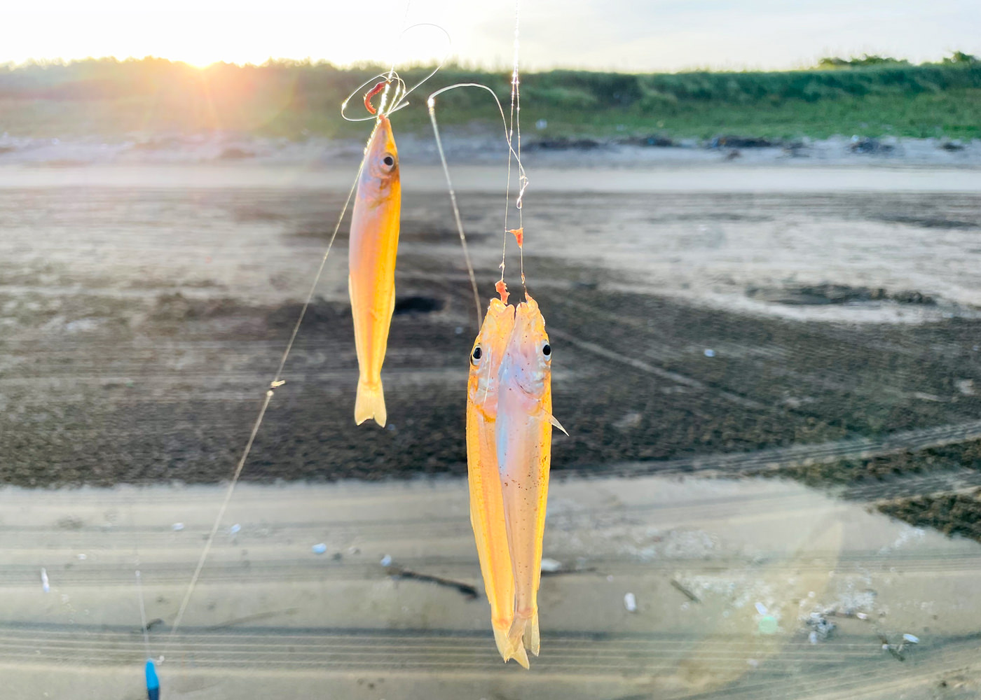 初投から早朝キスが釣れます。おはキス。元気すぎて仕掛けぐちゃぐちゃw